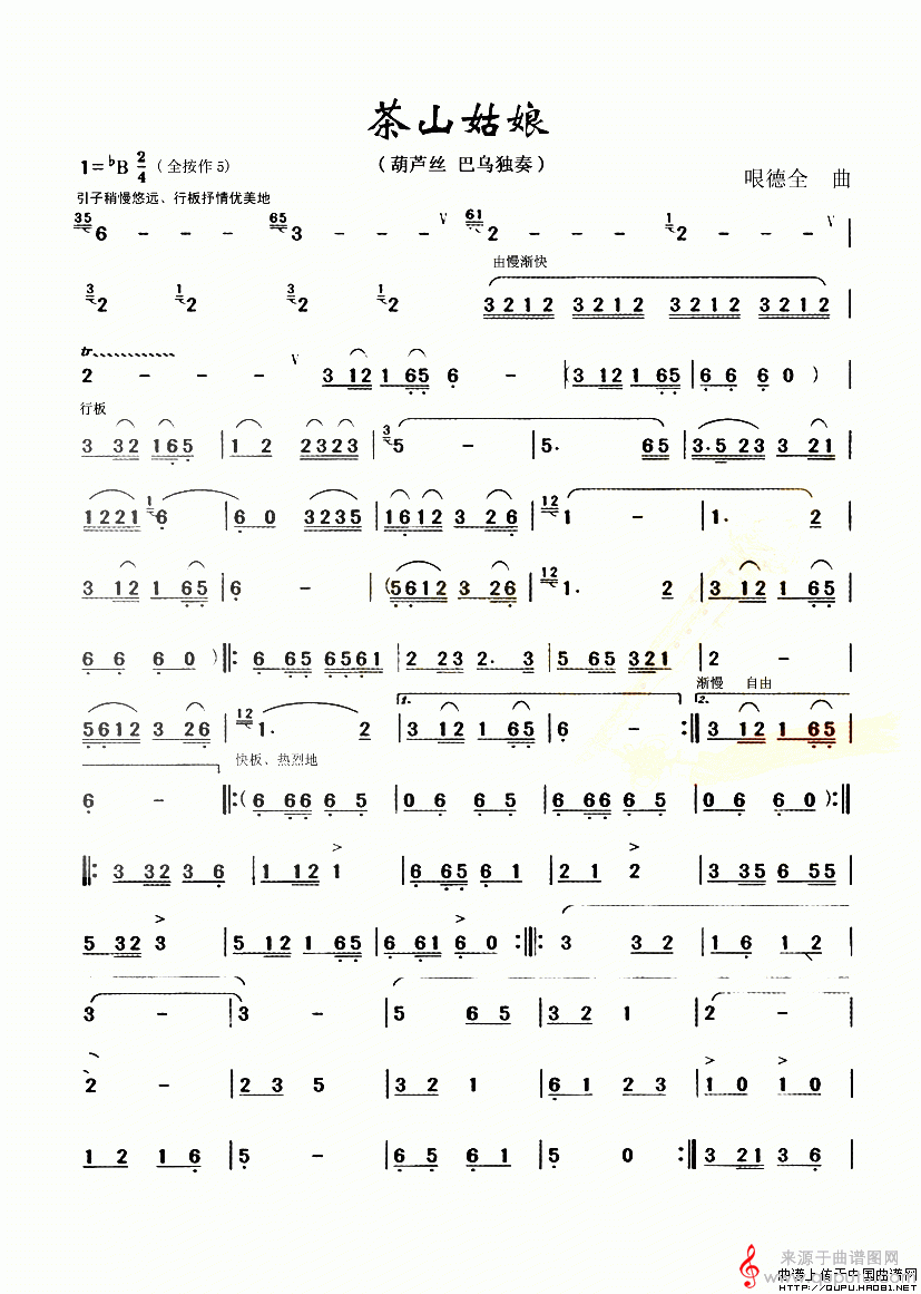 曲谱图网为您提供茶山姑娘简谱(茶山姑娘葫芦丝独奏)找谱子,就上曲谱图网。