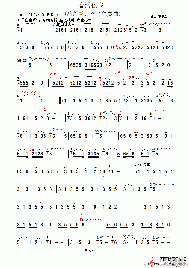 春满傣乡简谱(春满傣乡葫芦丝独奏曲谱)春满傣乡简谱(春满傣乡葫芦丝独奏曲谱)