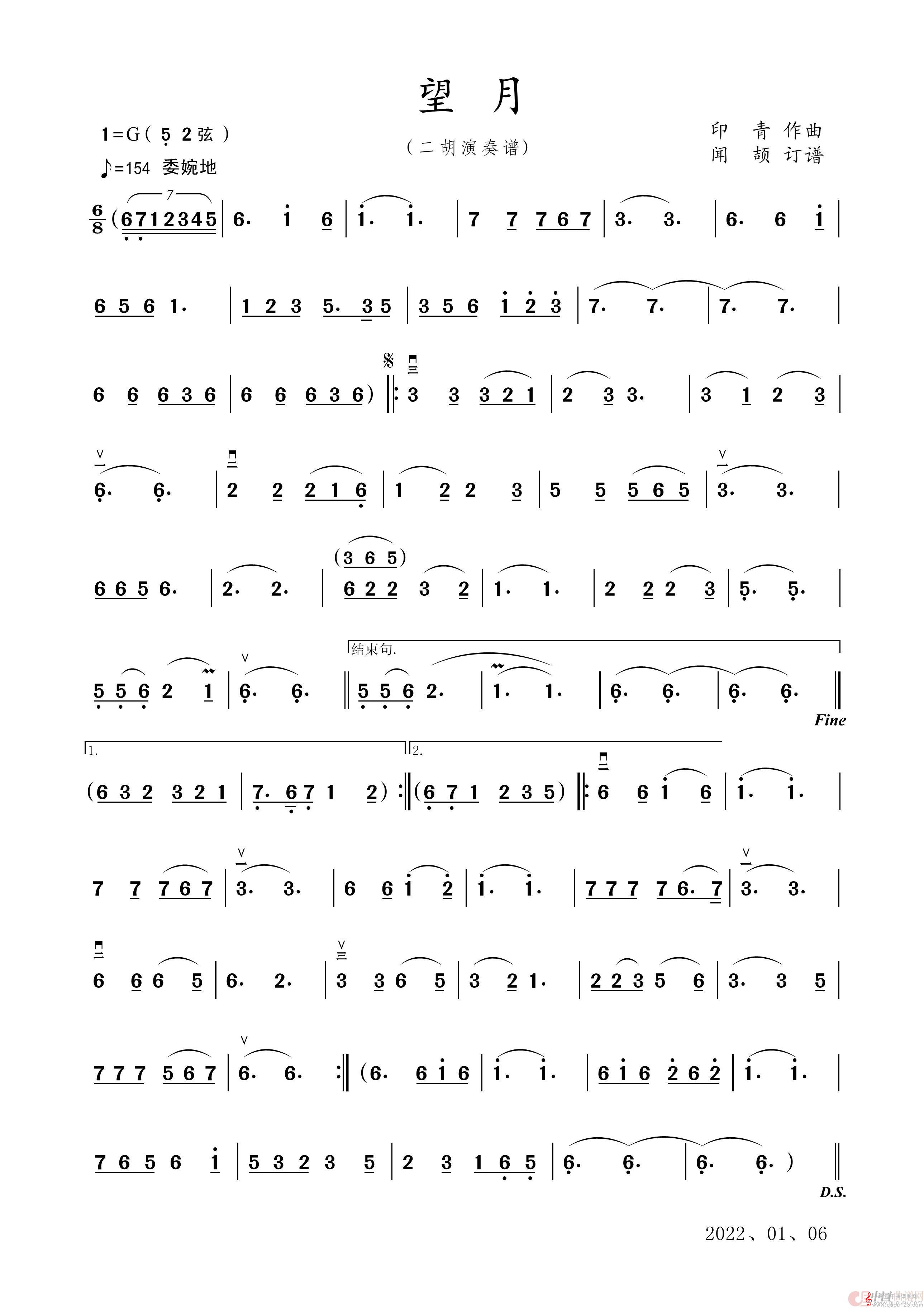 曲谱图网为您提供望月(望月二胡演奏谱歌曲)找谱子,就上曲谱图网。