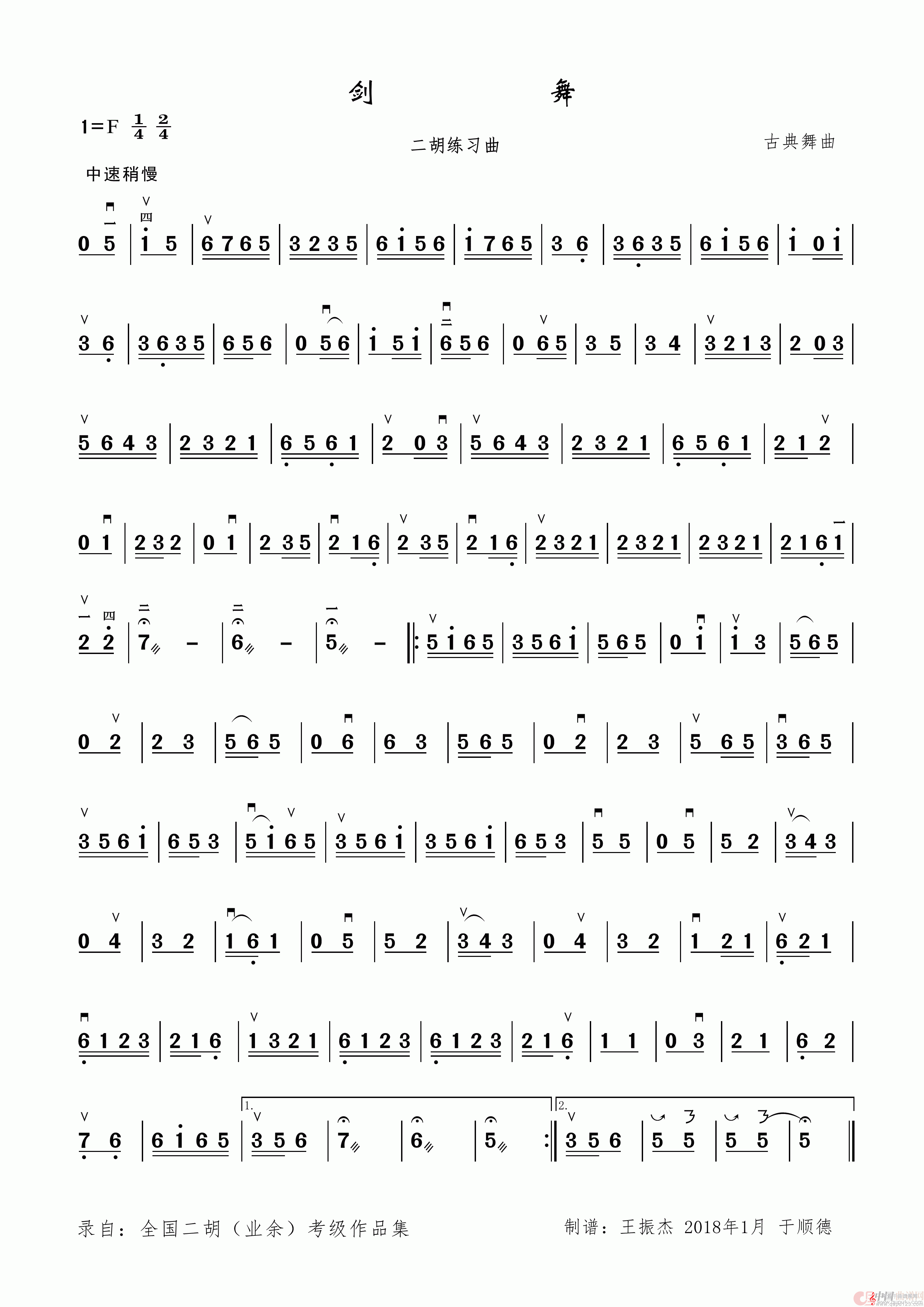 曲谱图网为您提供剑舞(剑舞二胡练习曲)找谱子,就上曲谱图网。