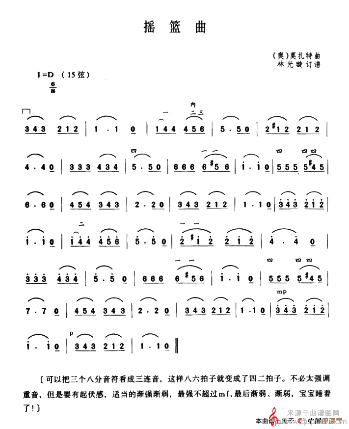 曲谱图网为您提供摇篮曲([奥]莫扎特曲、林光璇订谱版)找谱子,就上曲谱图网。