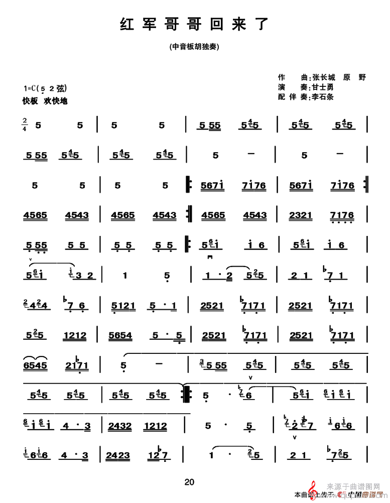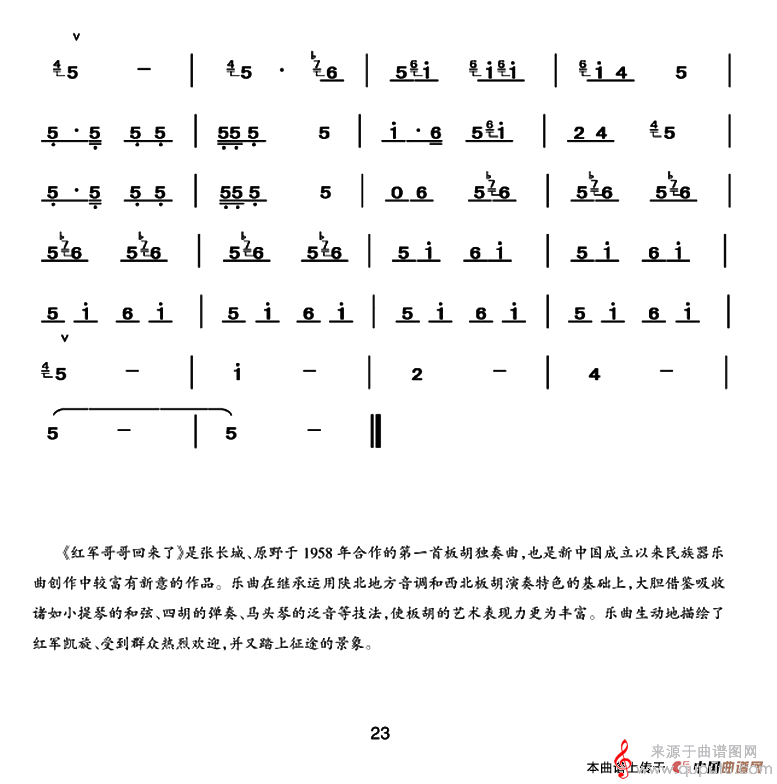 曲谱图网为您提供红军哥哥回来了(红军哥哥回来了二胡独奏)找谱子,就上曲谱图网。