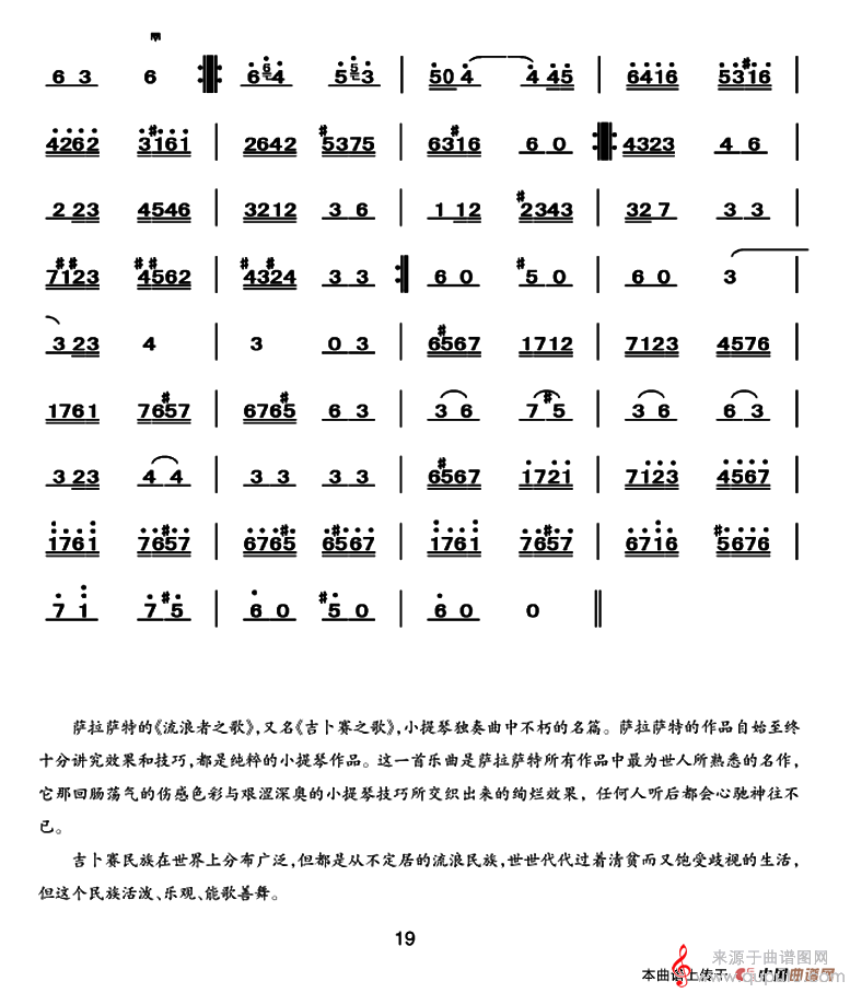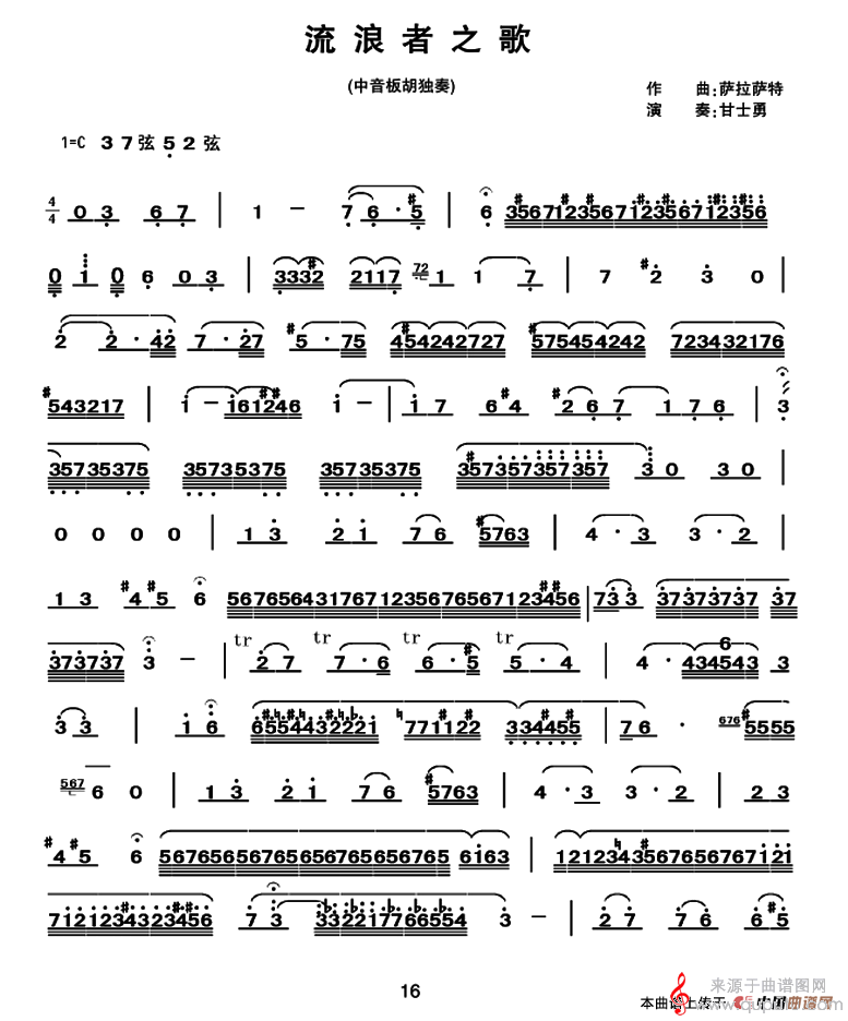 曲谱图网为您提供流浪者之歌简谱(流浪者之歌中音板胡)找谱子,就上曲谱图网。