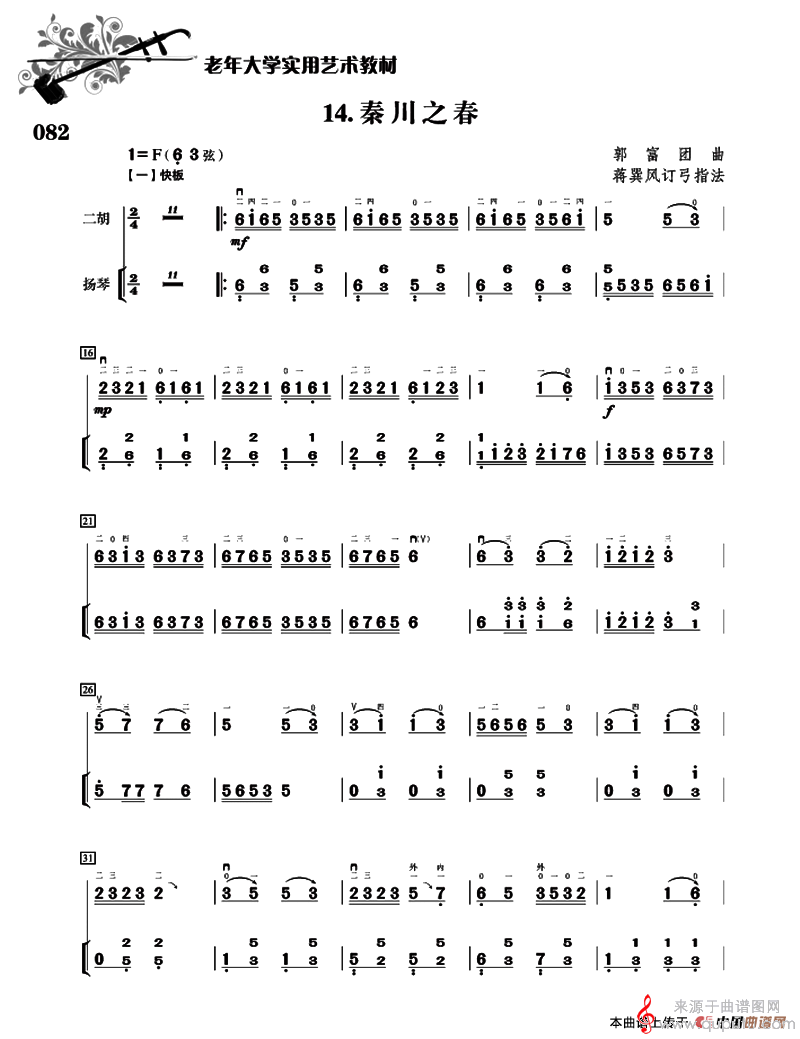 曲谱图网为您提供秦川之春(二胡+扬琴伴奏)找谱子,就上曲谱图网。