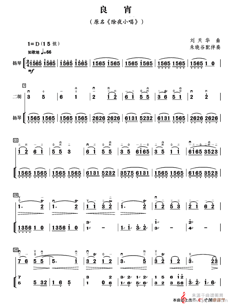 曲谱图网为您提供良宵(扬琴伴奏、朱晓谷配伴奏版)找谱子,就上曲谱图网。