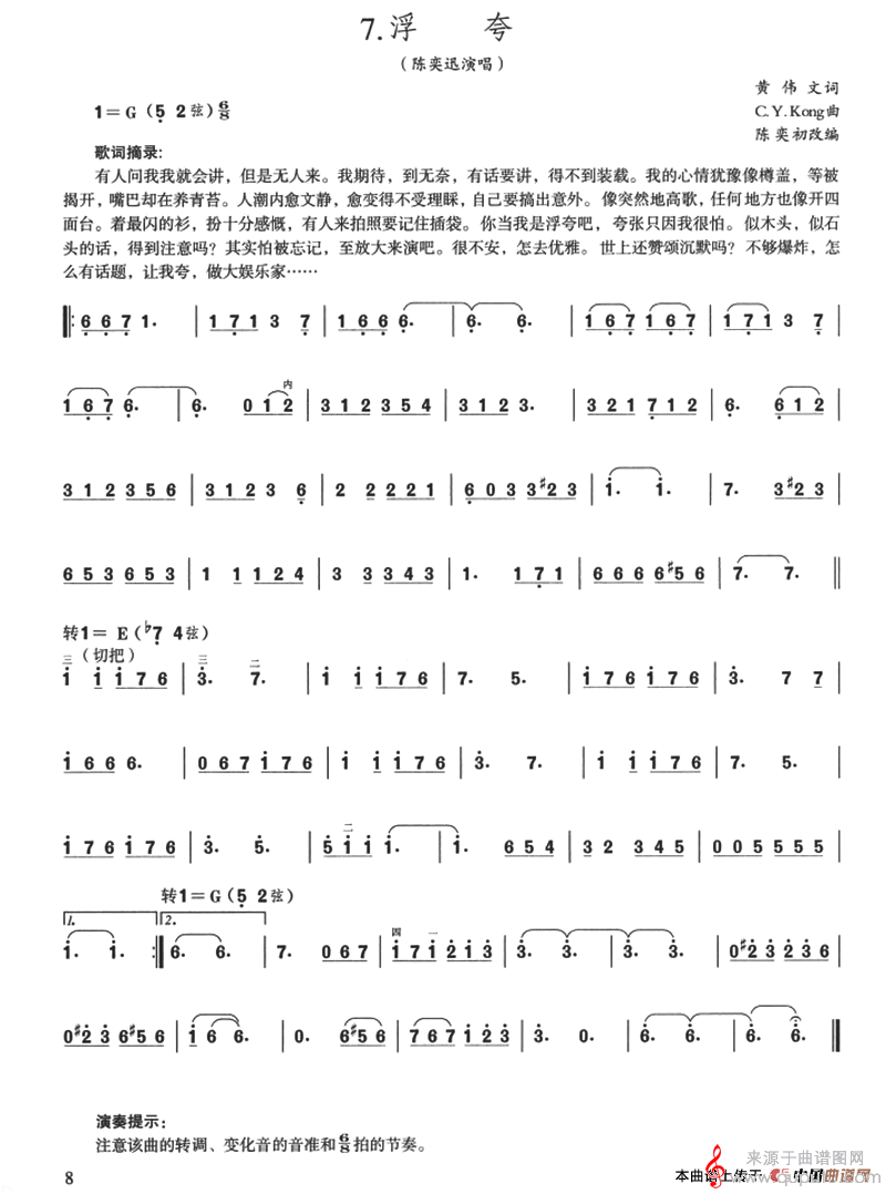 曲谱图网为您提供浮夸(浮夸歌词)找谱子,就上曲谱图网。