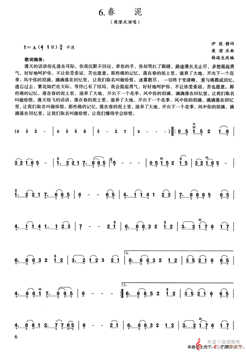 曲谱图网为您提供春泥(春泥歌词)找谱子,就上曲谱图网。
