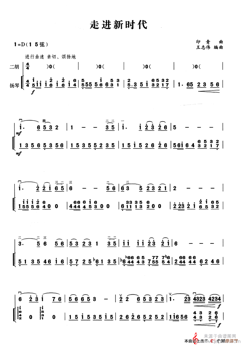 曲谱图网为您提供走进新时代(走进新时代二胡+扬琴伴奏)找谱子,就上曲谱图网。