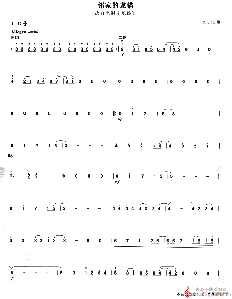 曲谱图网为您提供邻家的龙猫(邻家的龙猫简谱)找谱子,就上曲谱图网。
