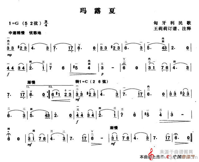 曲谱图网为您提供马露夏(马露夏胡琴)找谱子,就上曲谱图网。