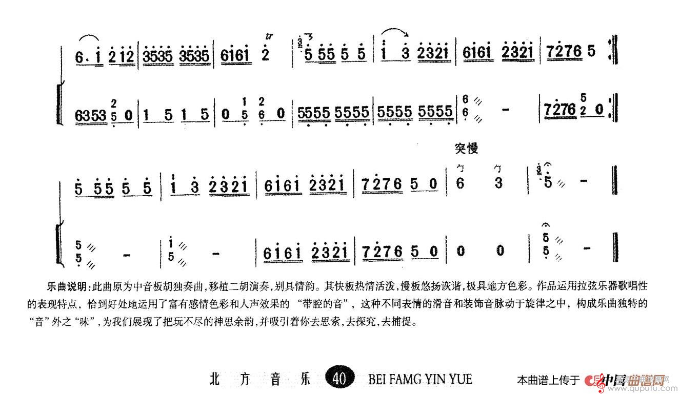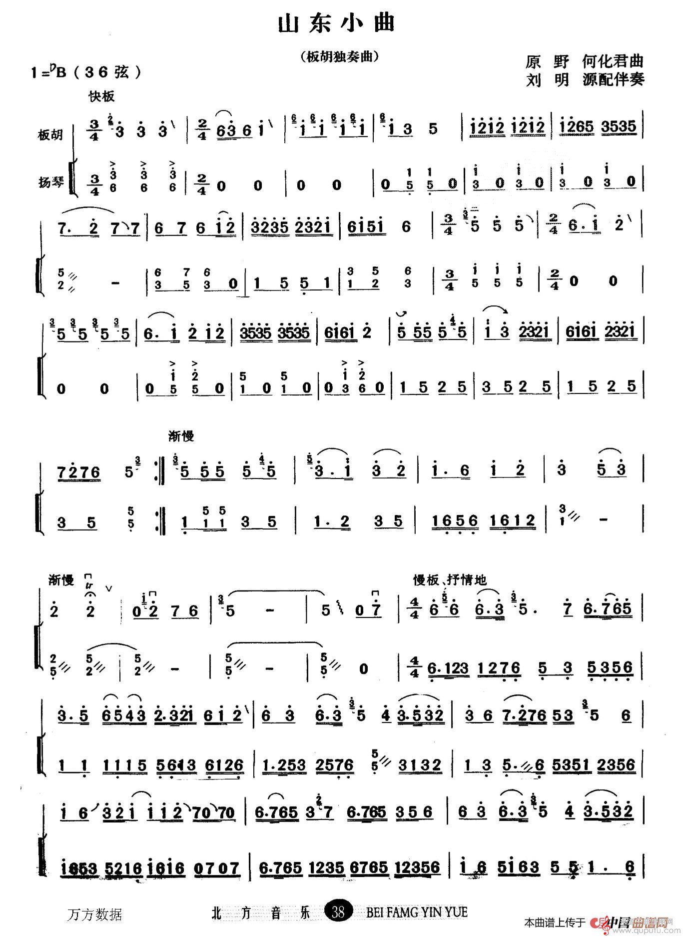 曲谱图网为您提供山东小曲(板胡+扬琴伴奏)找谱子,就上曲谱图网。
