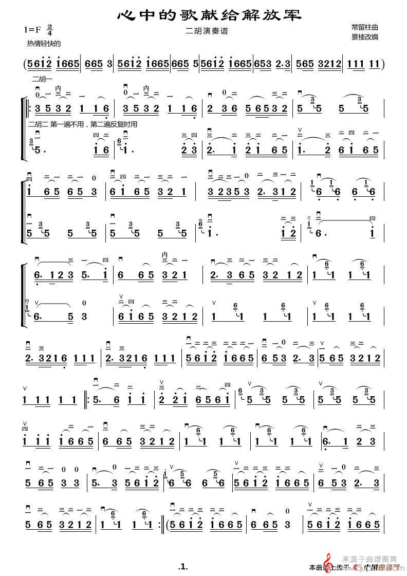 曲谱图网为您提供心中的歌献给解放军(心中的歌献给解放军二胡合奏谱)找谱子,就上曲谱图网。