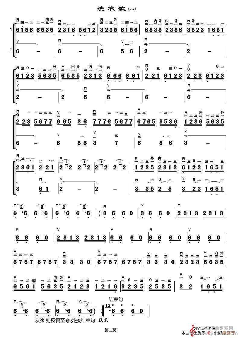 曲谱图网为您提供洗衣歌(洗衣歌二胡合奏谱)找谱子,就上曲谱图网。