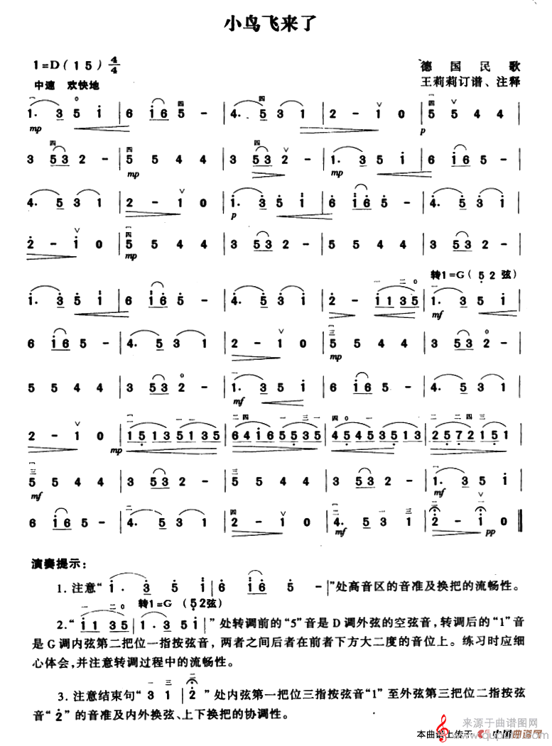 曲谱图网为您提供小鸟飞来了(小鸟飞来了简谱胡琴)找谱子,就上曲谱图网。