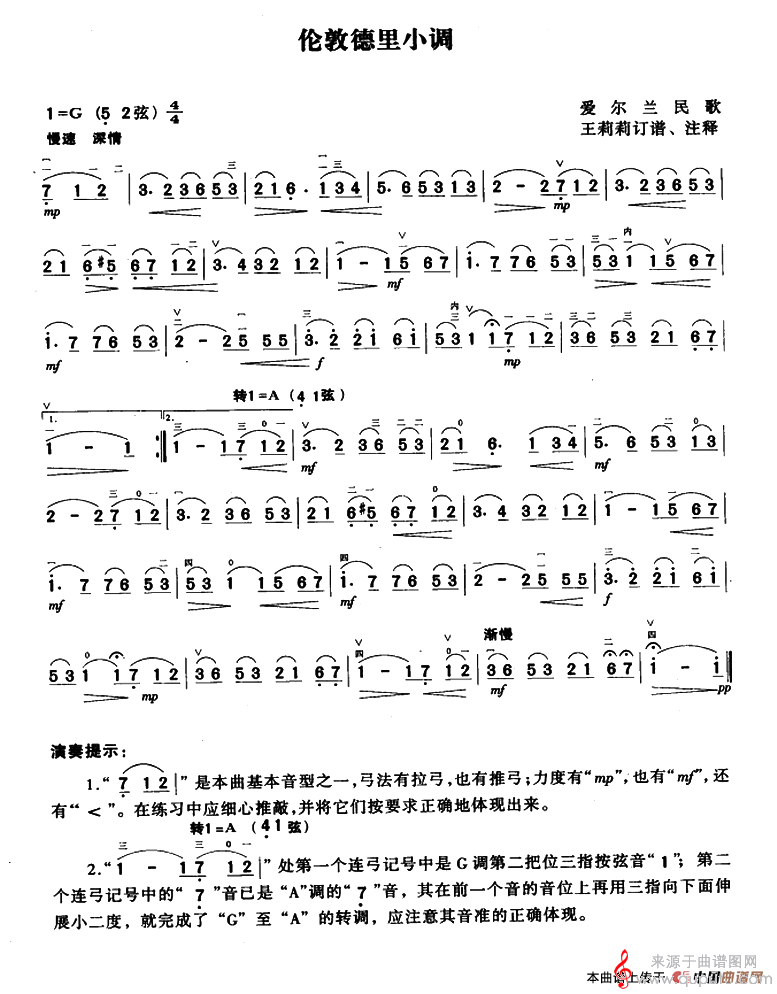 曲谱图网为您提供伦敦德里小调(爱尔兰民歌、王莉莉订谱版)找谱子,就上曲谱图网。