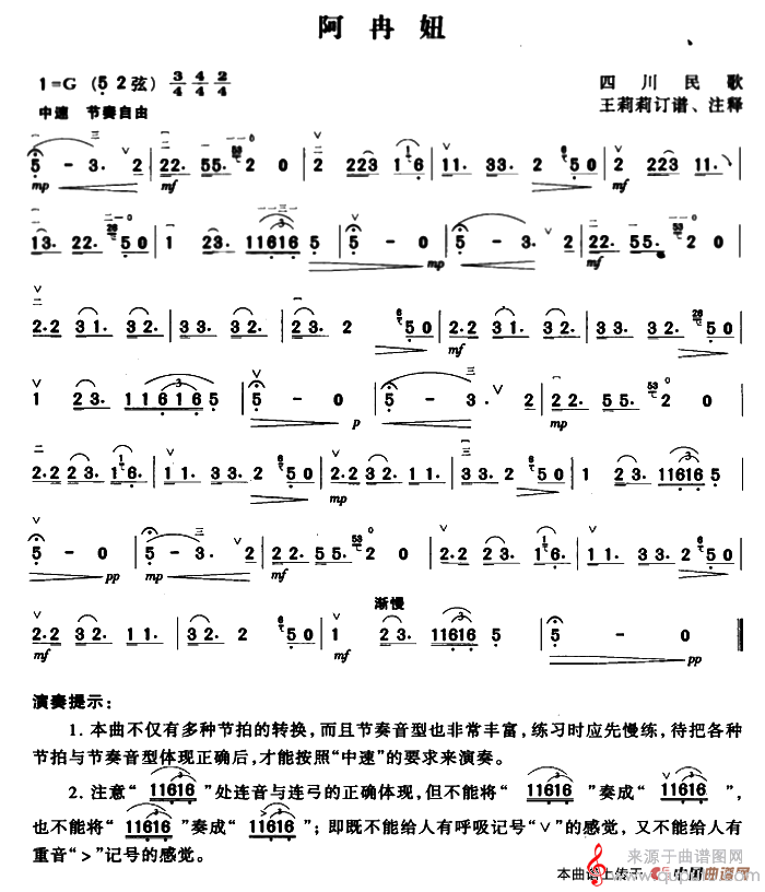 曲谱图网为您提供阿冉姐(四川民歌、王莉莉订谱)找谱子,就上曲谱图网。