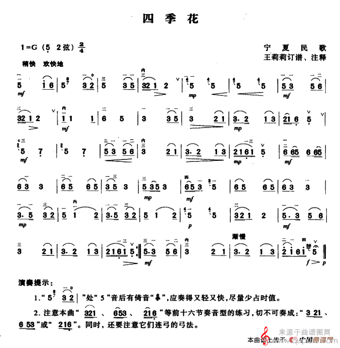 四季花(宁夏民歌、王莉莉订谱)