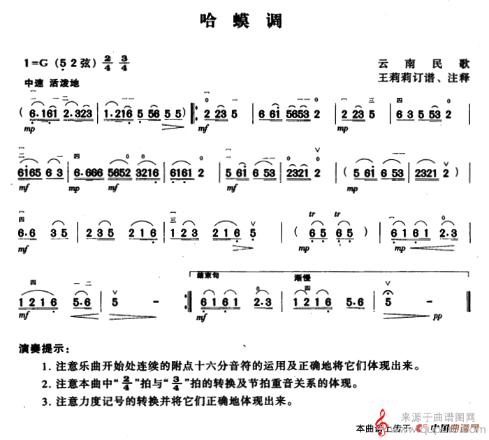 云南民歌、王莉莉订谱