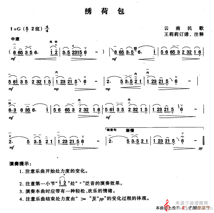 曲谱图网为您提供绣荷包(绣荷包云南民歌歌曲)找谱子,就上曲谱图网。