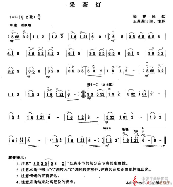 曲谱图网为您提供采茶灯简谱(采茶灯歌曲福建民歌)找谱子,就上曲谱图网。