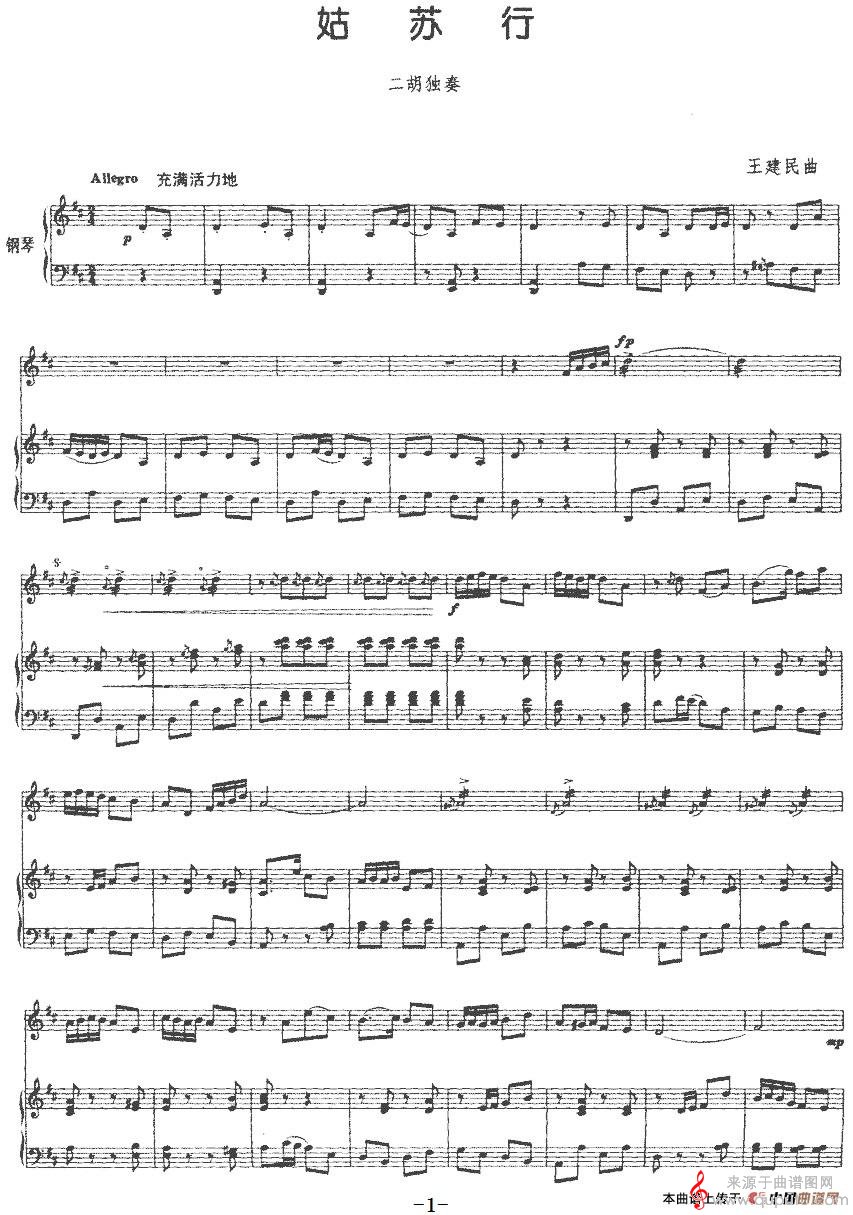 曲谱图网为您提供姑苏行(姑苏行二胡+钢琴伴奏)找谱子,就上曲谱图网。