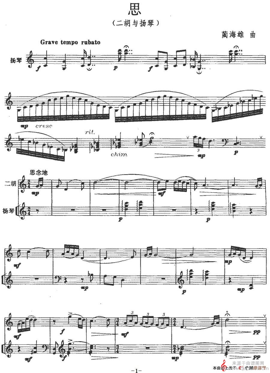 曲谱图网为您提供思(思二胡+扬琴)找谱子,就上曲谱图网。