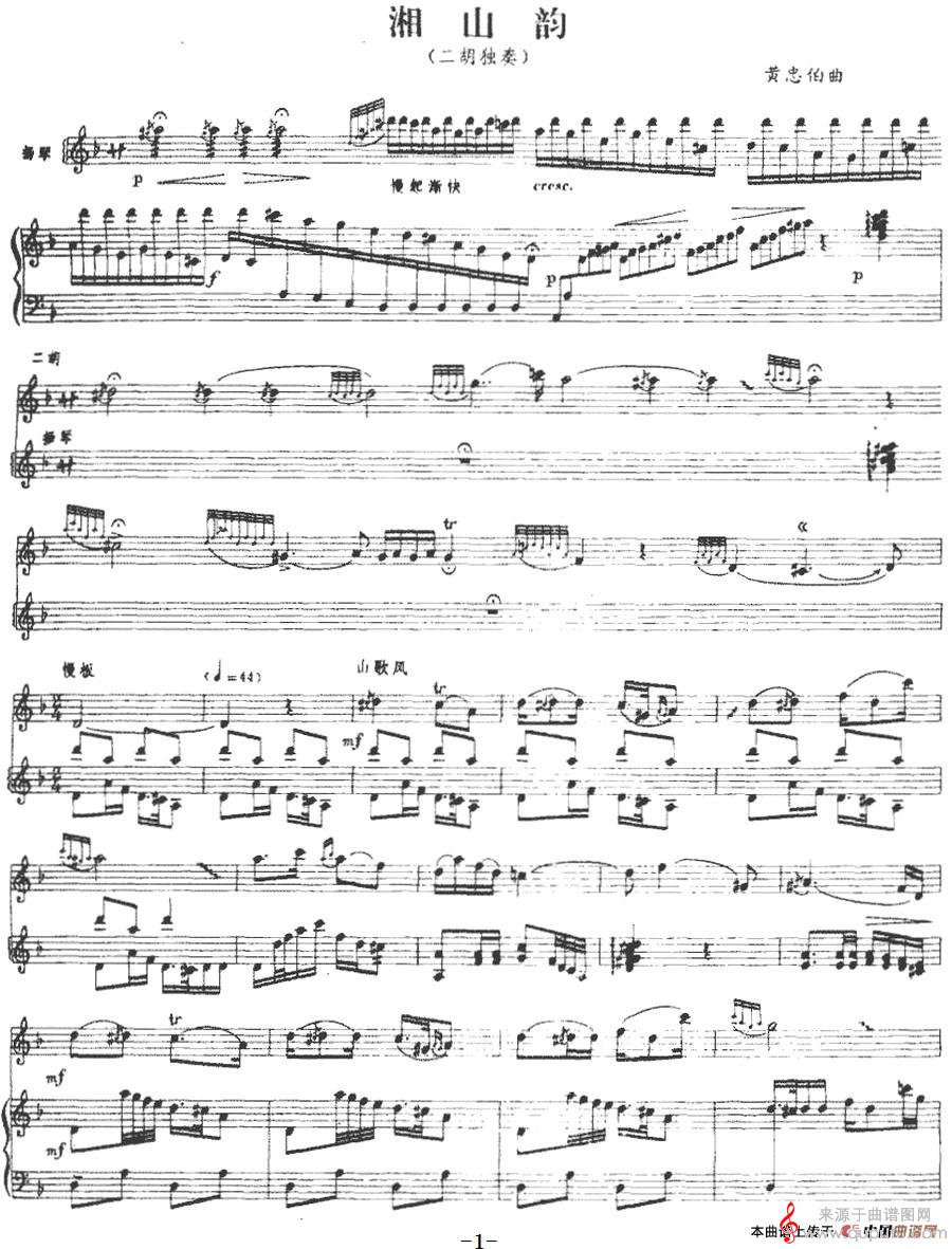 曲谱图网为您提供湘山韵(湘山韵二胡+扬琴)找谱子,就上曲谱图网。