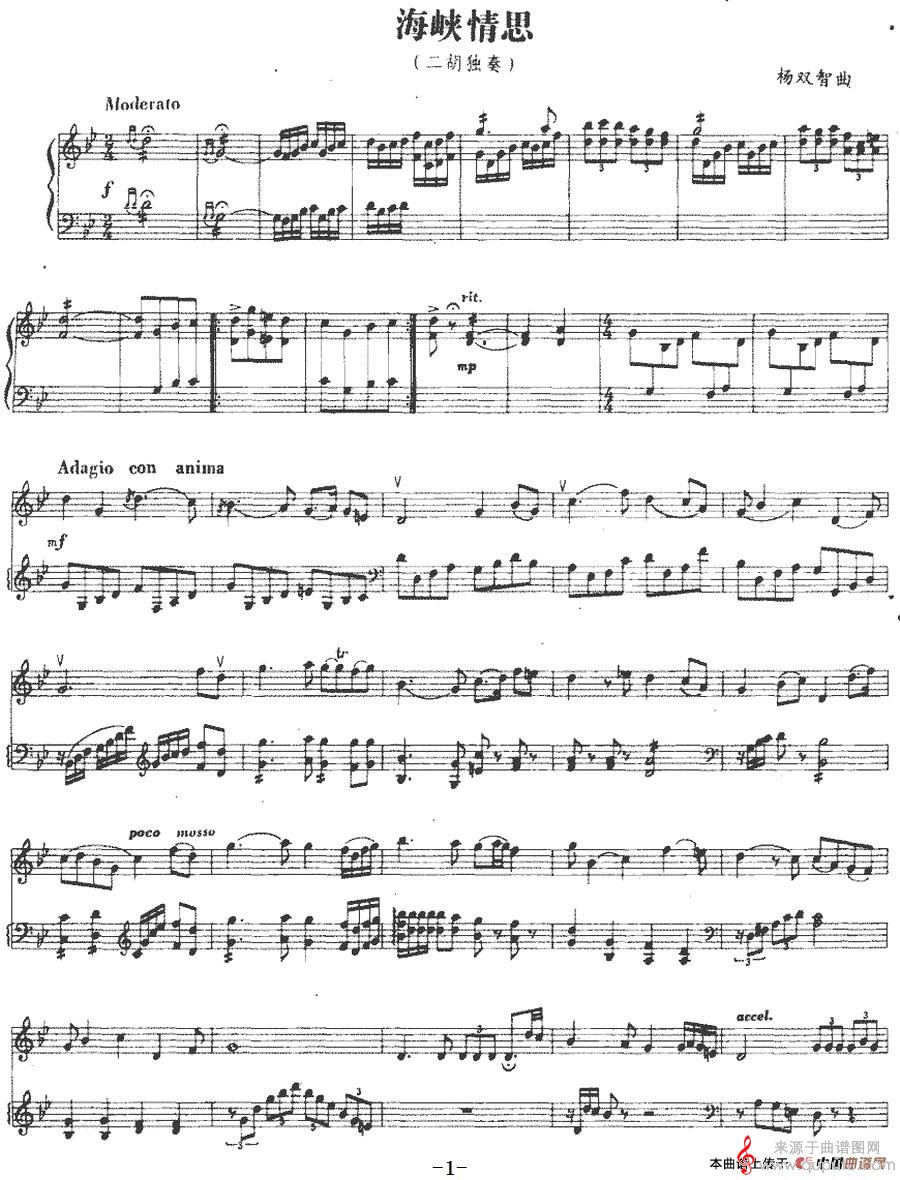 曲谱图网为您提供海峡情思(海峡情思歌曲简谱二胡独奏)找谱子,就上曲谱图网。