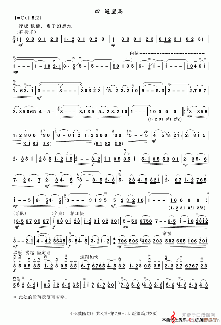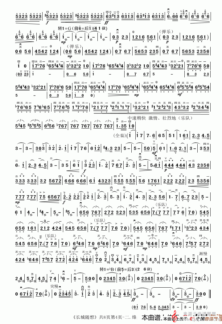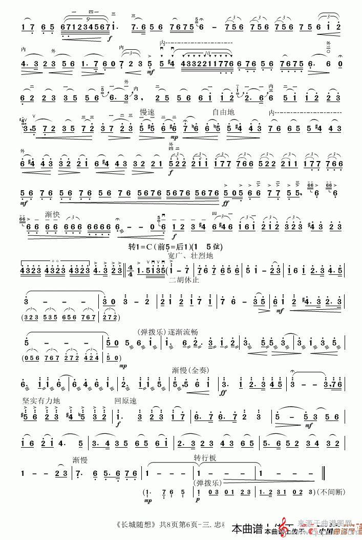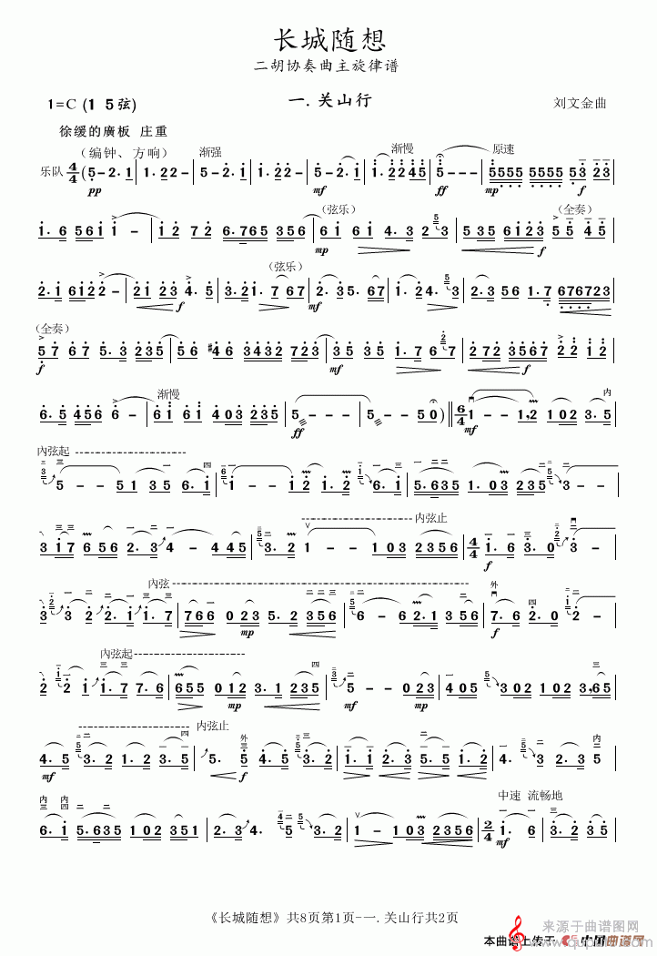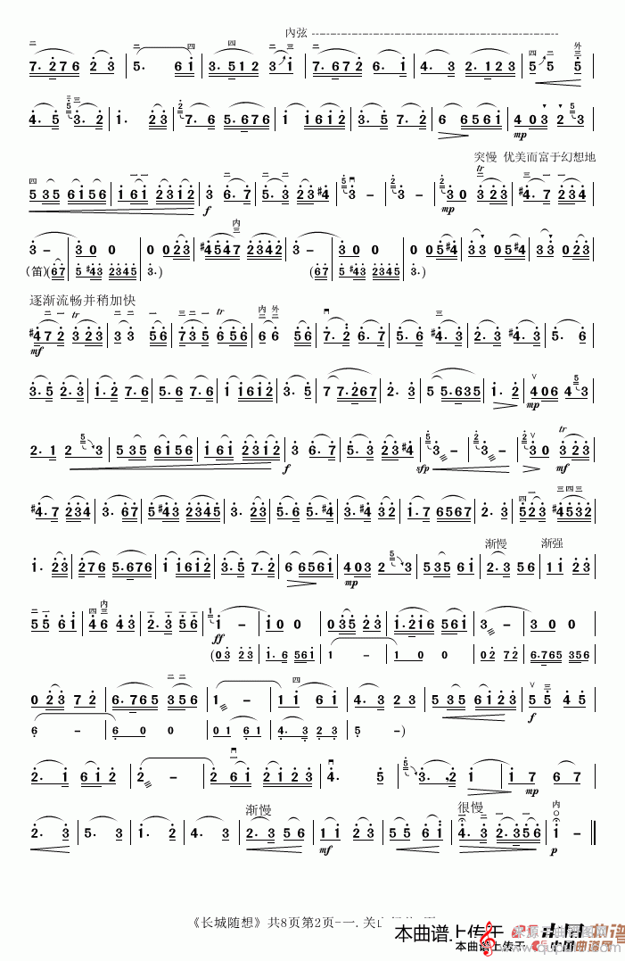 曲谱图网为您提供长城随想(长城随想二胡独奏简谱)找谱子,就上曲谱图网。
