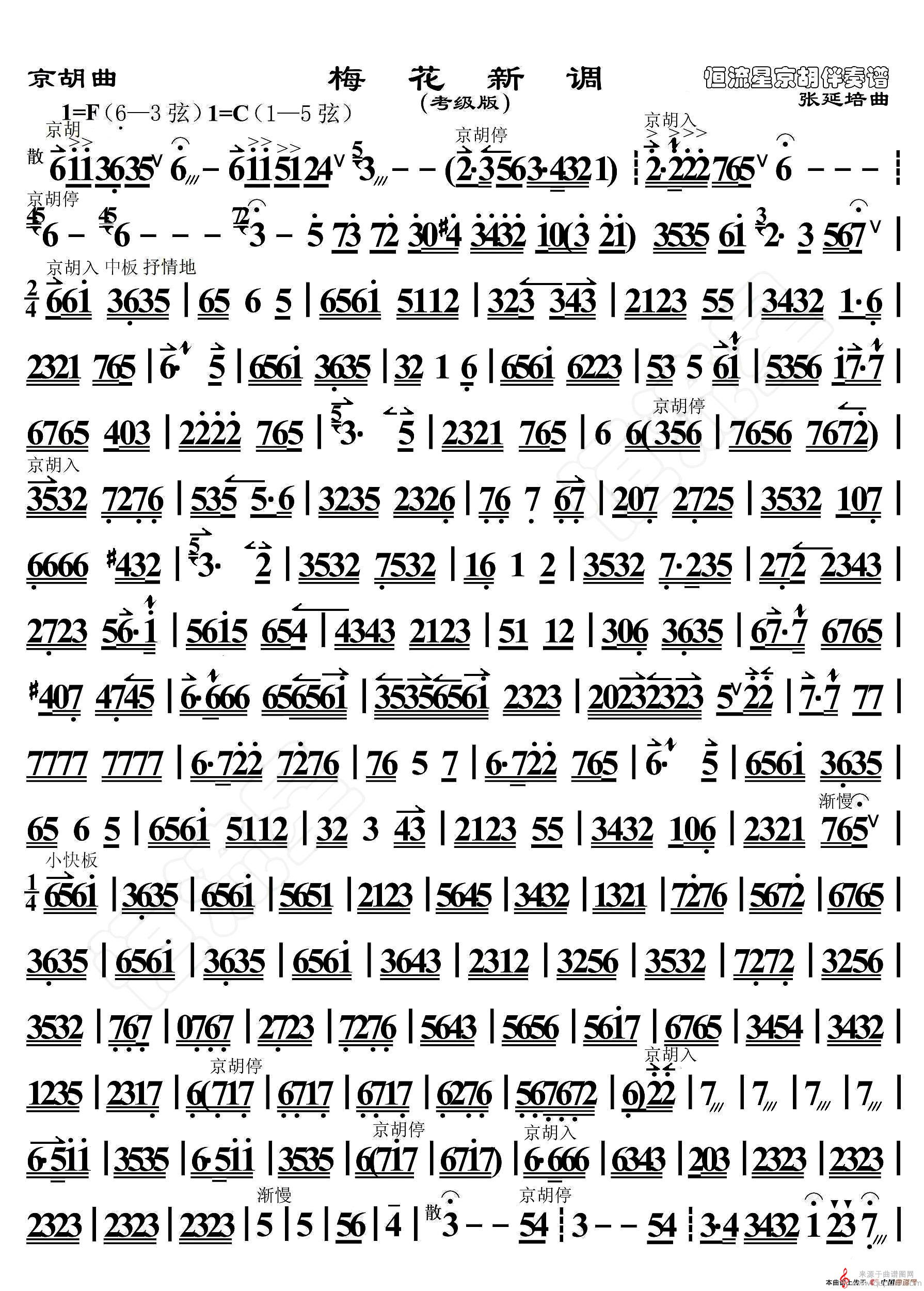 曲谱图网为您提供梅花新调(梅花新调京胡曲、考级版、恒流星制谱曲谱)找谱子,就上曲谱图网。