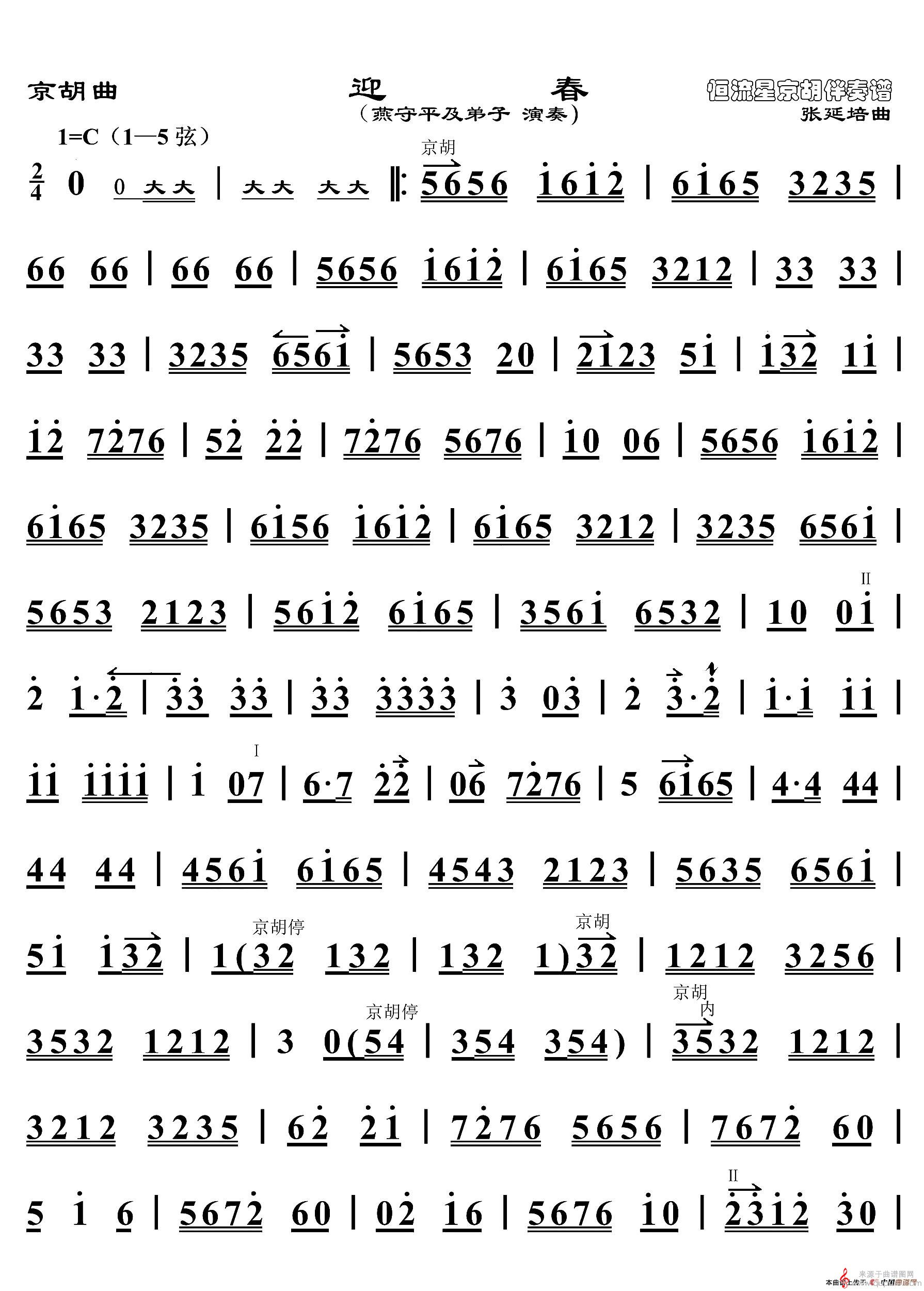 曲谱图网为您提供迎春(迎春歌曲京胡曲、恒流星制谱版)找谱子,就上曲谱图网。