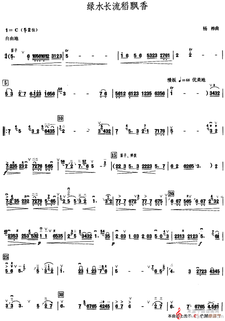 绿水长流稻飘香(绿水长流稻飘香甘尚时高胡演奏谱)