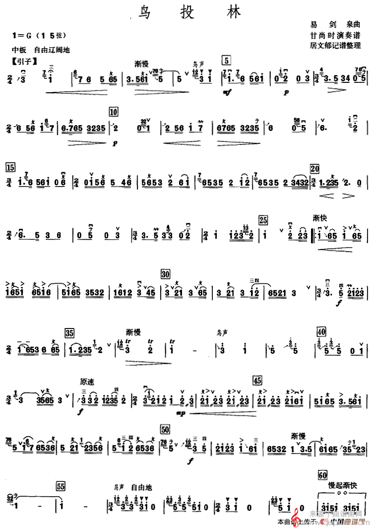 鸟投林简谱(甘尚时高胡演奏谱、居文郁记谱整理版)