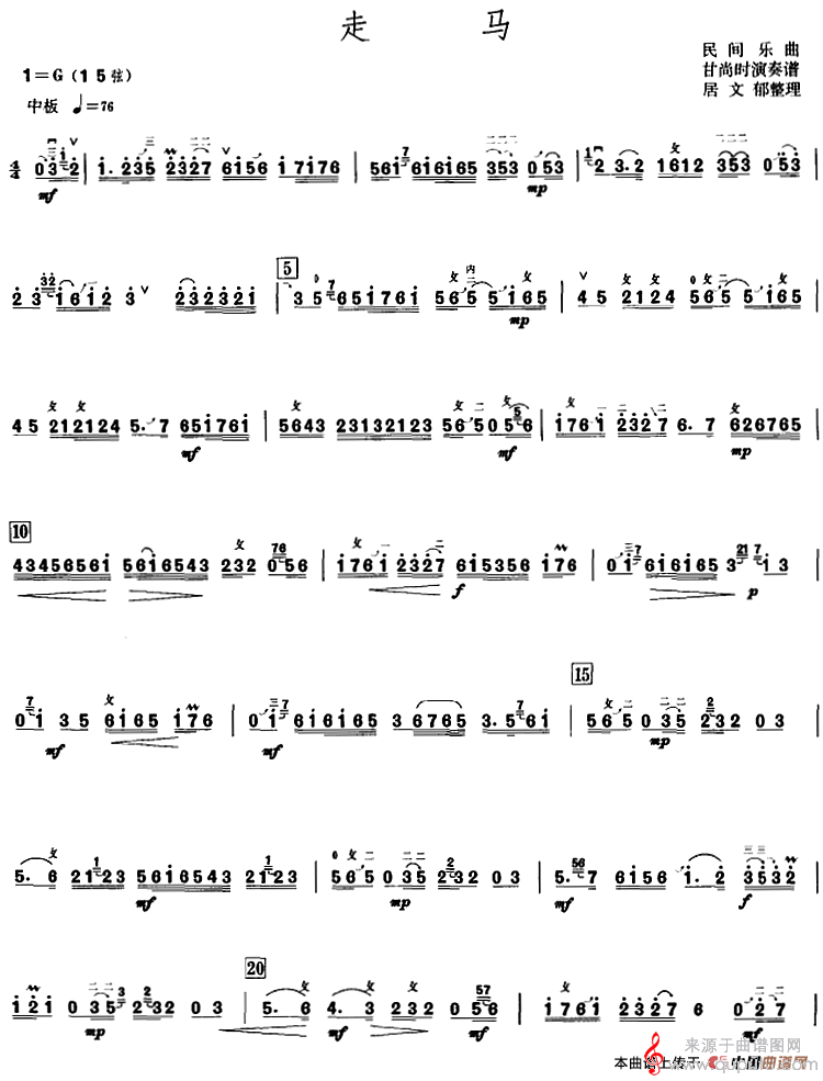 曲谱图网为您提供走马(居文郁整理)找谱子,就上曲谱图网。