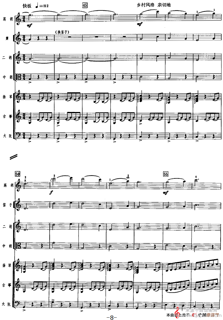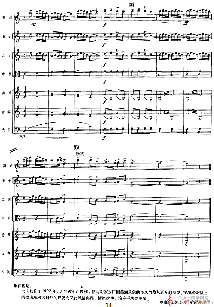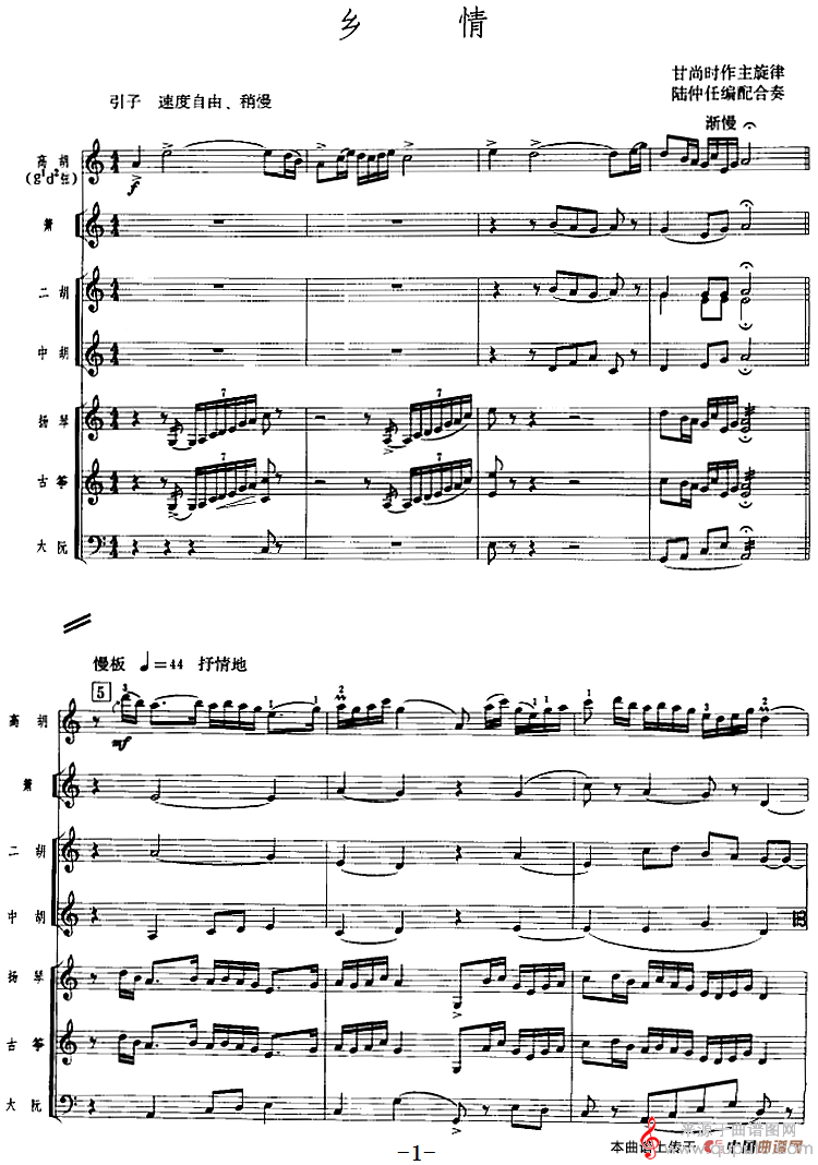 曲谱图网为您提供乡情(乡情歌曲广东音乐、高胡+乐队伴奏)找谱子,就上曲谱图网。