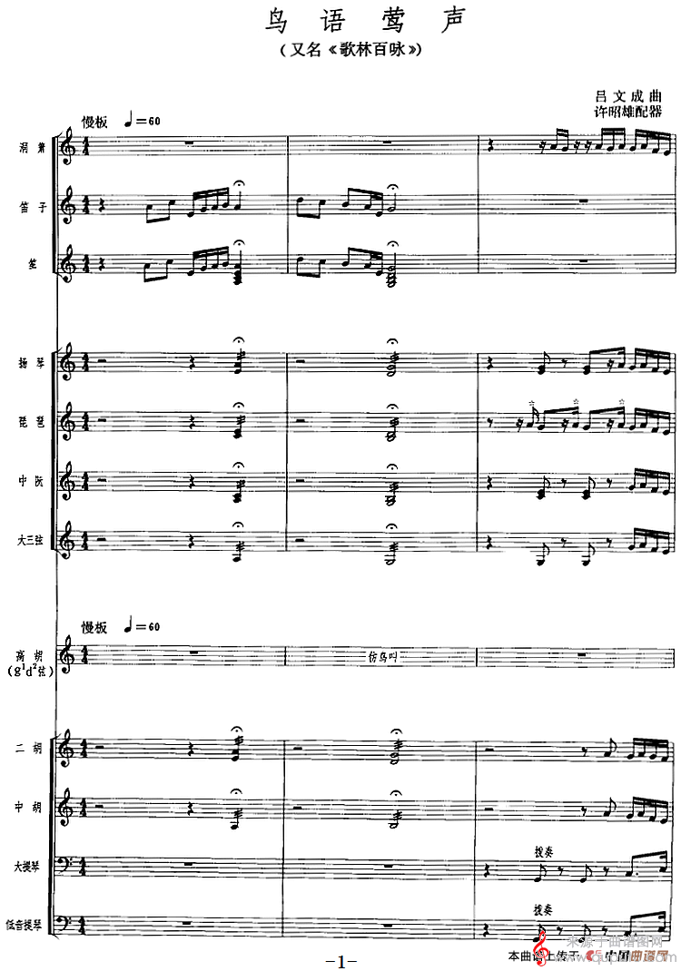 曲谱图网为您提供鸟语莺声(吕文成曲 许昭雄配器)找谱子,就上曲谱图网。
