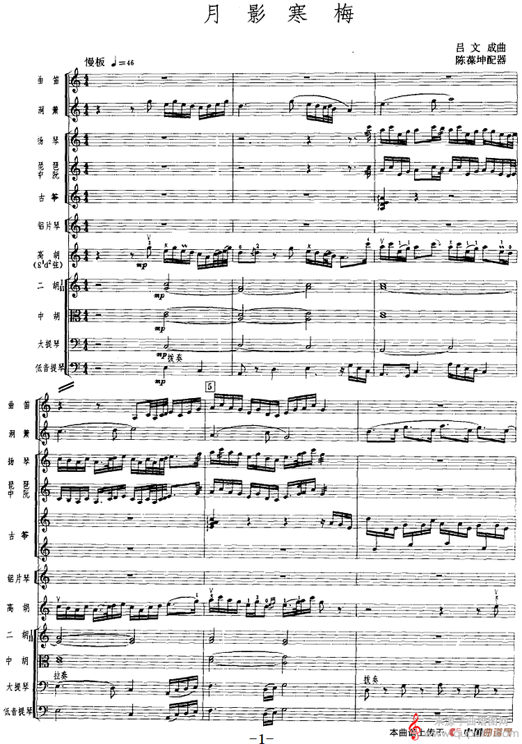 曲谱图网为您提供月影寒梅(吕文成曲 陈葆坤配器)找谱子,就上曲谱图网。