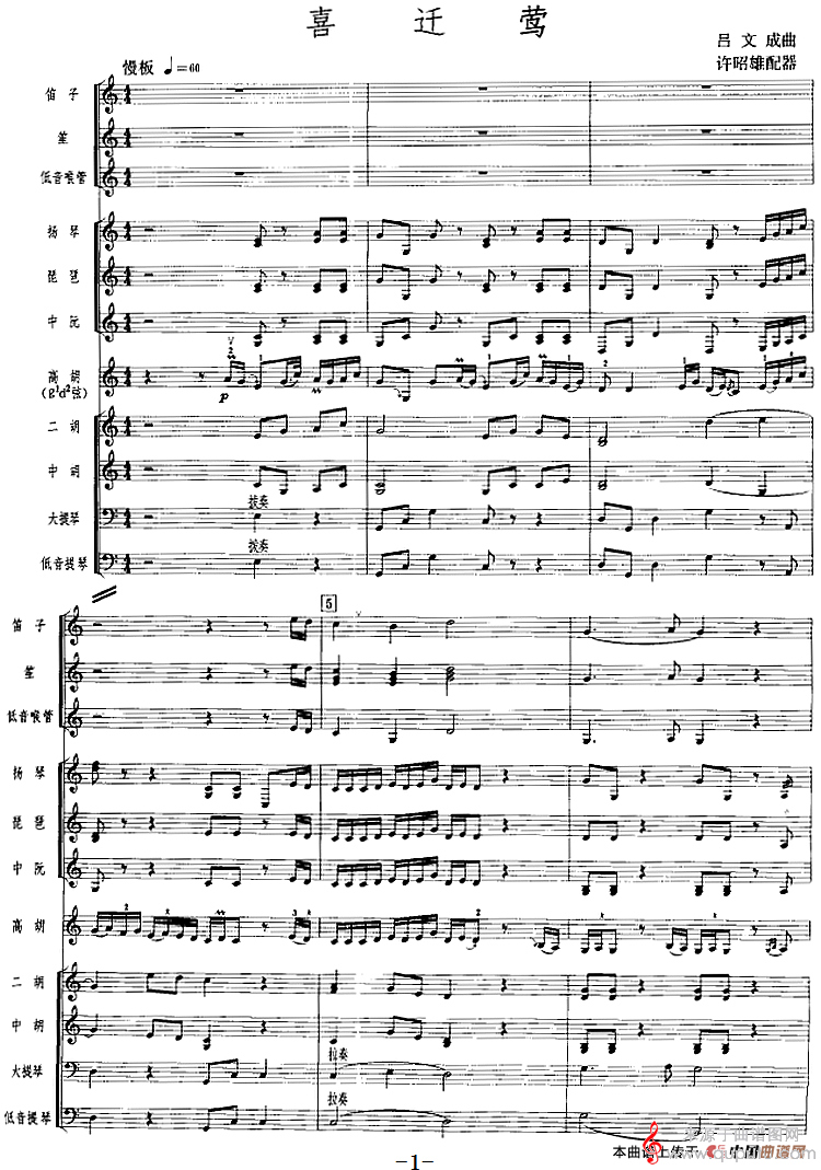 曲谱图网为您提供喜迁莺(广东音乐吕文成曲 许昭雄配器 )找谱子,就上曲谱图网。