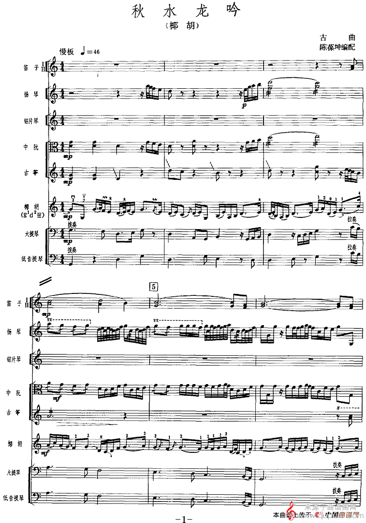 曲谱图网为您提供秋水龙吟(秋水龙吟简谱二胡独奏)找谱子,就上曲谱图网。