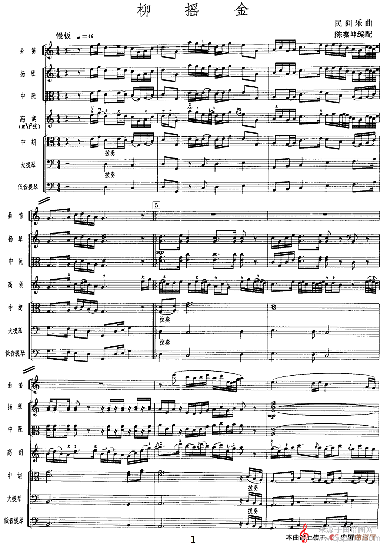 曲谱图网为您提供柳摇金(柳摇金简谱曲谱演奏)找谱子,就上曲谱图网。