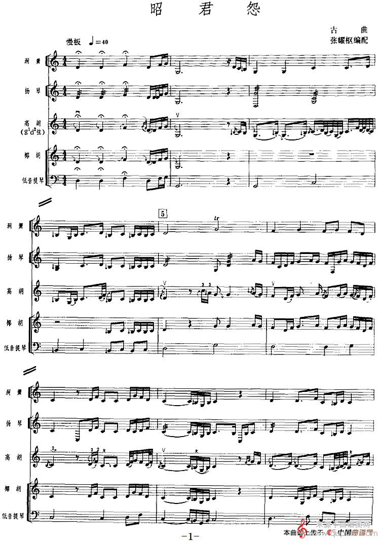 曲谱图网为您提供昭君怨(昭君怨高胡+乐队伴奏)找谱子,就上曲谱图网。