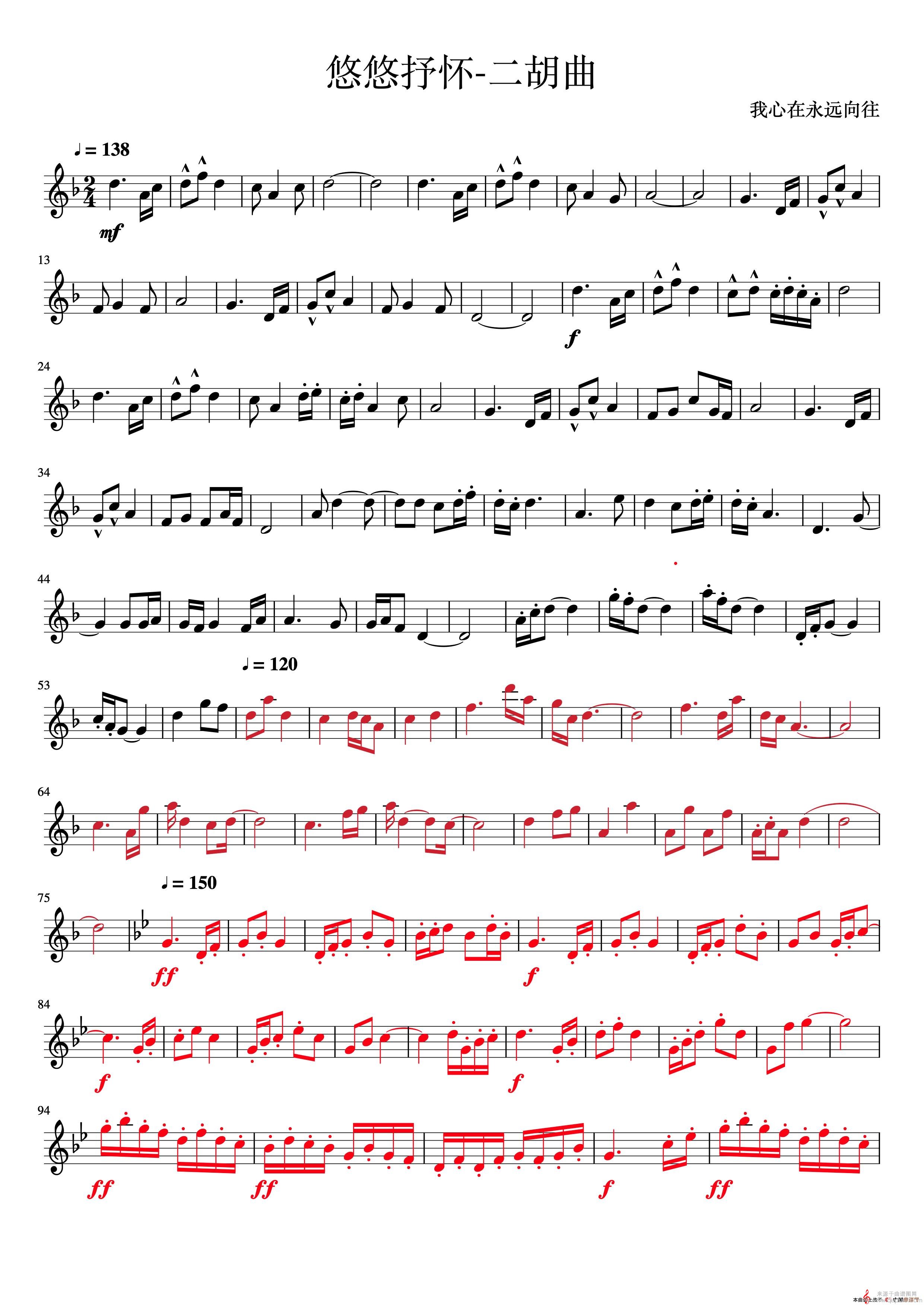 曲谱图网为您提供悠悠抒怀情(悠悠抒怀情二胡独奏曲)找谱子,就上曲谱图网。