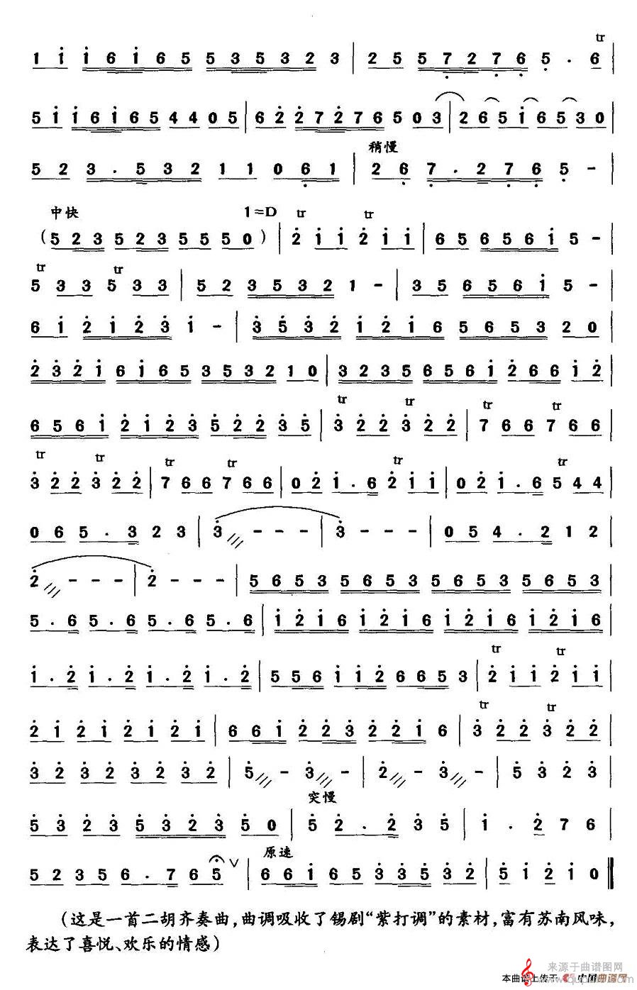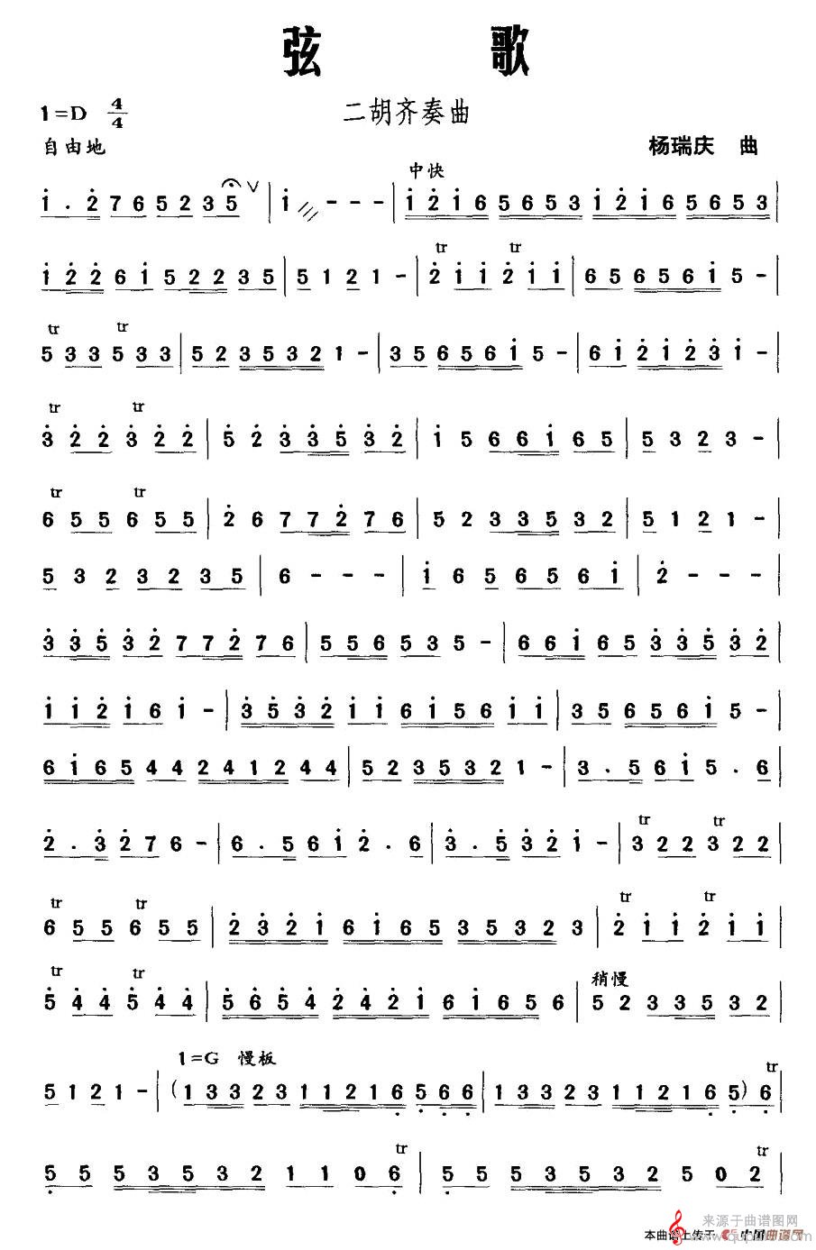 弦歌简谱(弦歌二胡齐奏曲曲谱)