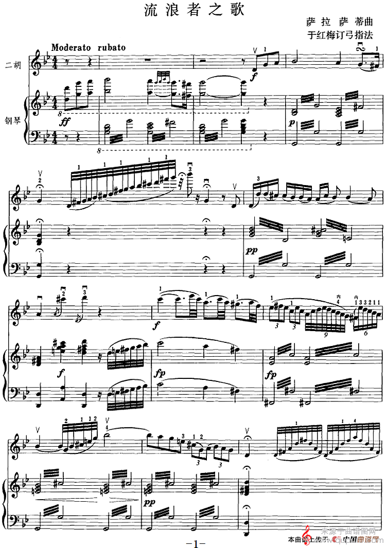 曲谱图网为您提供流浪者之歌歌曲简谱(流浪者之歌二胡演奏简谱)找谱子,就上曲谱图网。