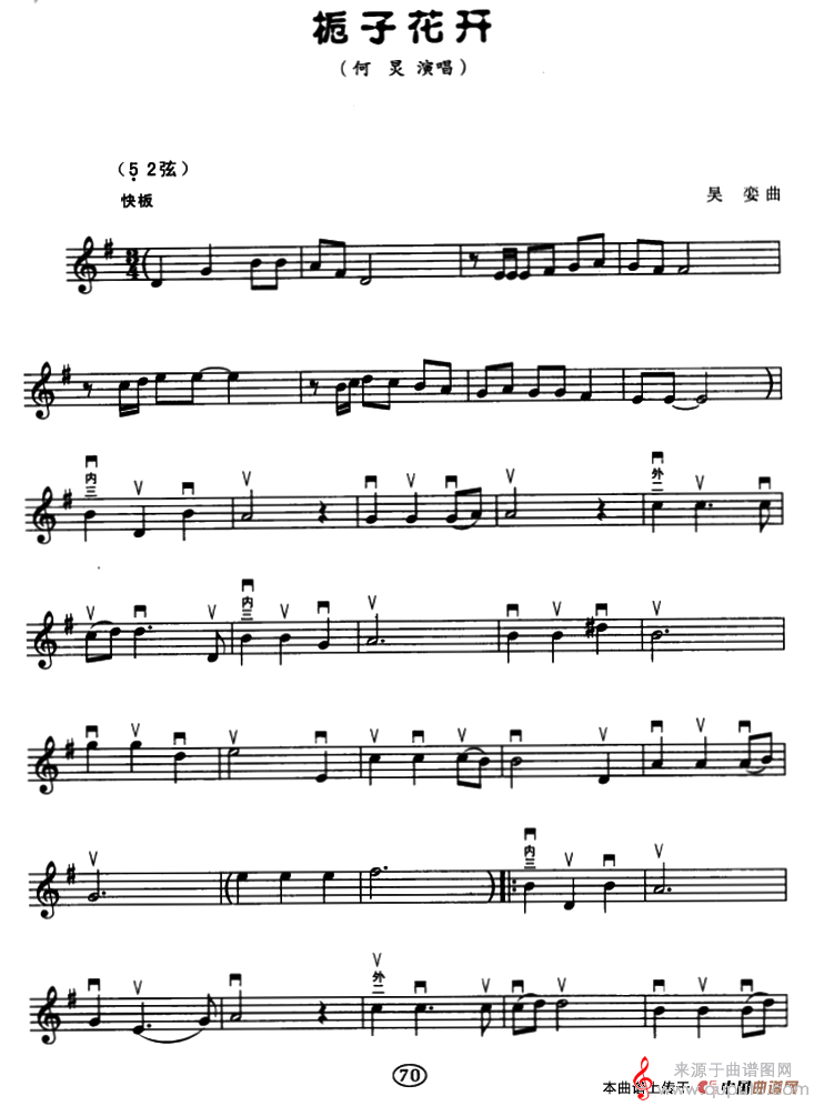 曲谱图网为您提供栀子花开歌曲简谱(栀子花开胡琴独奏曲谱)找谱子,就上曲谱图网。