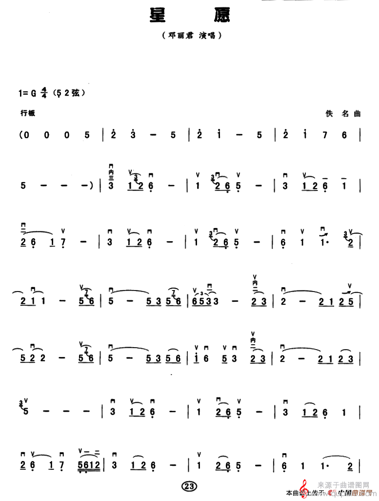 星愿简谱(星愿胡琴演奏曲谱)