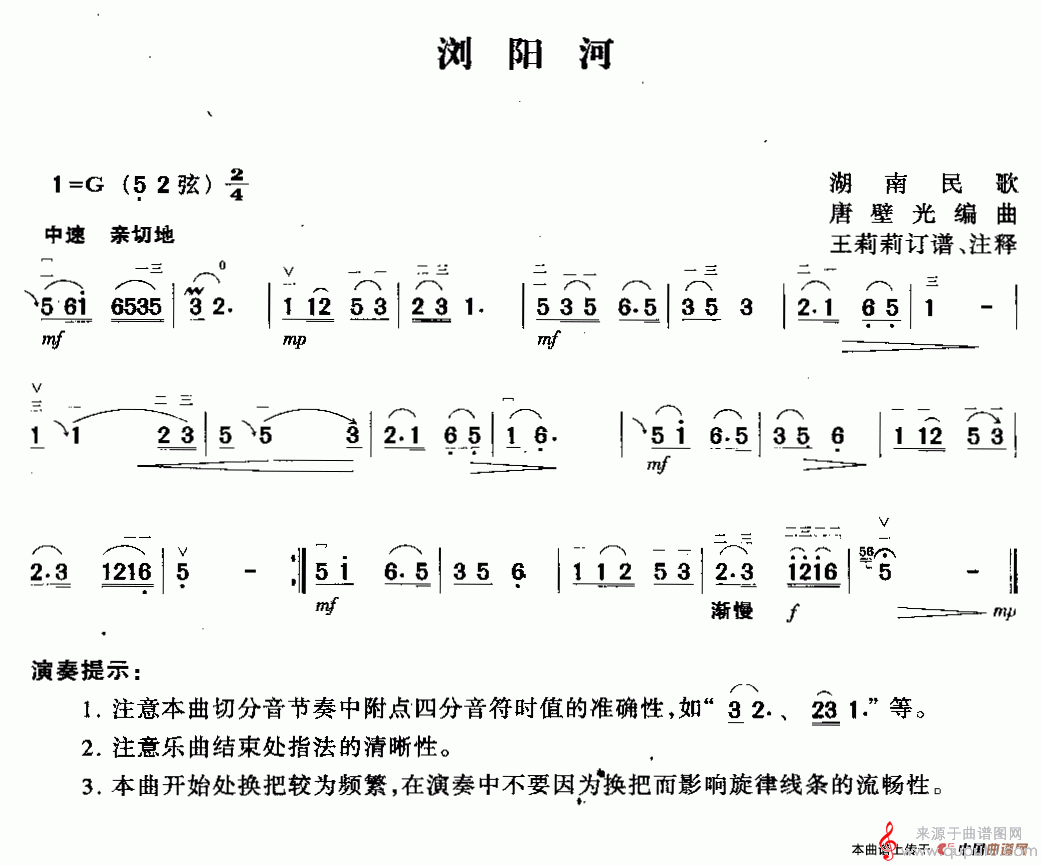浏阳河(王莉莉订谱版)民歌简谱(浏阳河胡琴乐曲曲谱)