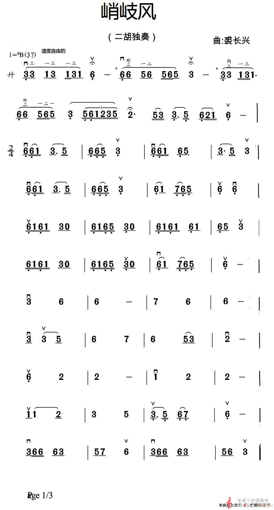 曲谱图网为您提供峭岐风简谱(峭岐风二胡独奏曲谱)找谱子,就上曲谱图网。