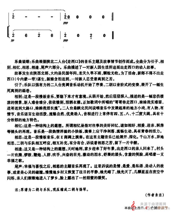 西口情韵简谱(西口情韵二胡+扬琴伴奏曲谱)