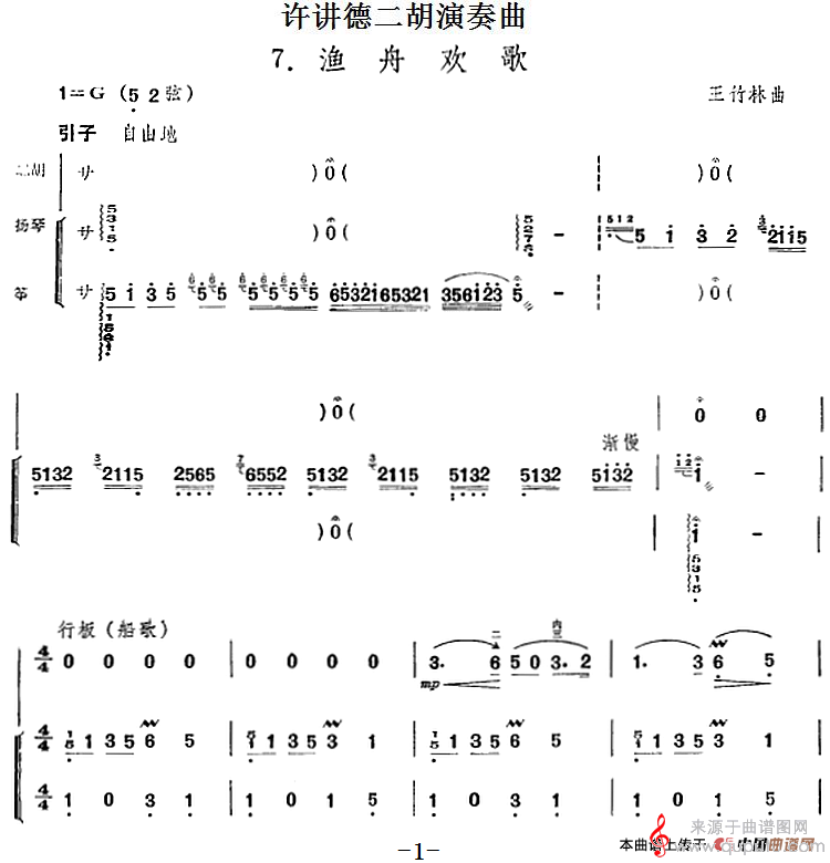 许讲德二胡演奏曲:7.渔舟欢歌简谱(许讲德二胡演奏曲:7.渔舟欢歌二胡+扬琴+筝演奏曲谱)